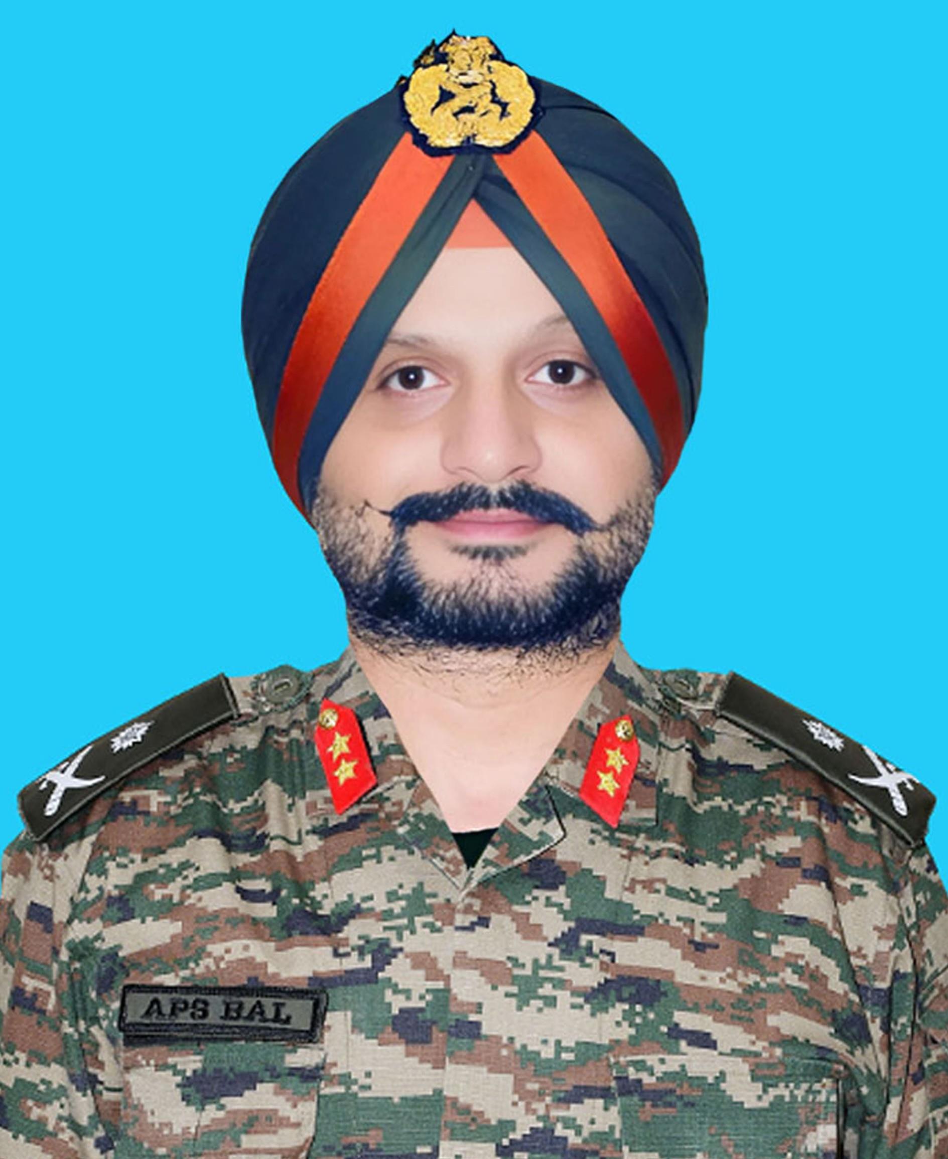 Maj Gen APS Bal,AVSM,SM Maj Gen Awinder Pal Singh Bal, AVSM, SM is an alumnus of Sainik School Kapurthala, NDA Khadakwasla and IMA Dehradun. He was commissioned into the Jammu Kashmir Rifles Regiment on 12 Jun 1993. The Gen Offr has a vast military experience and has served in varied terrains. He has attended all essential courses of instructions. He is a graduate of Defence Services Staff College, Wellington, Senior Command and Higher Command Courses, Mhow and National Defence College, New Delhi.